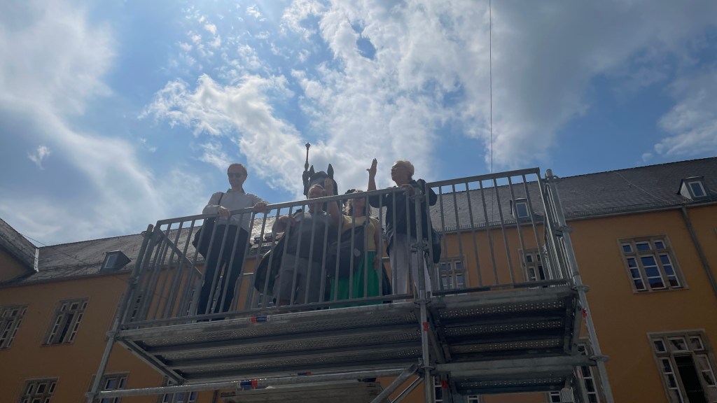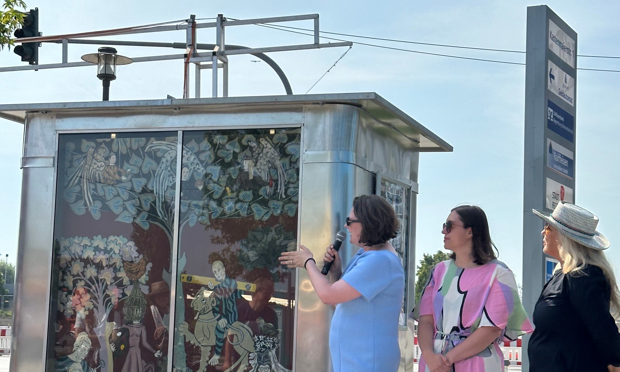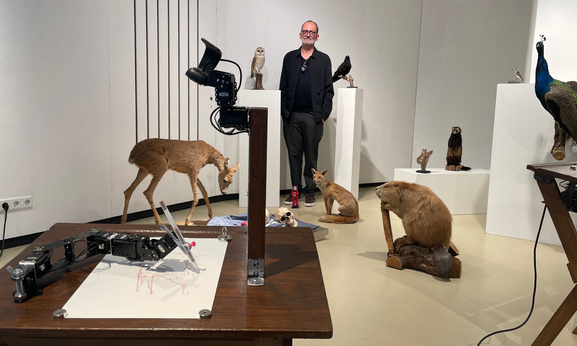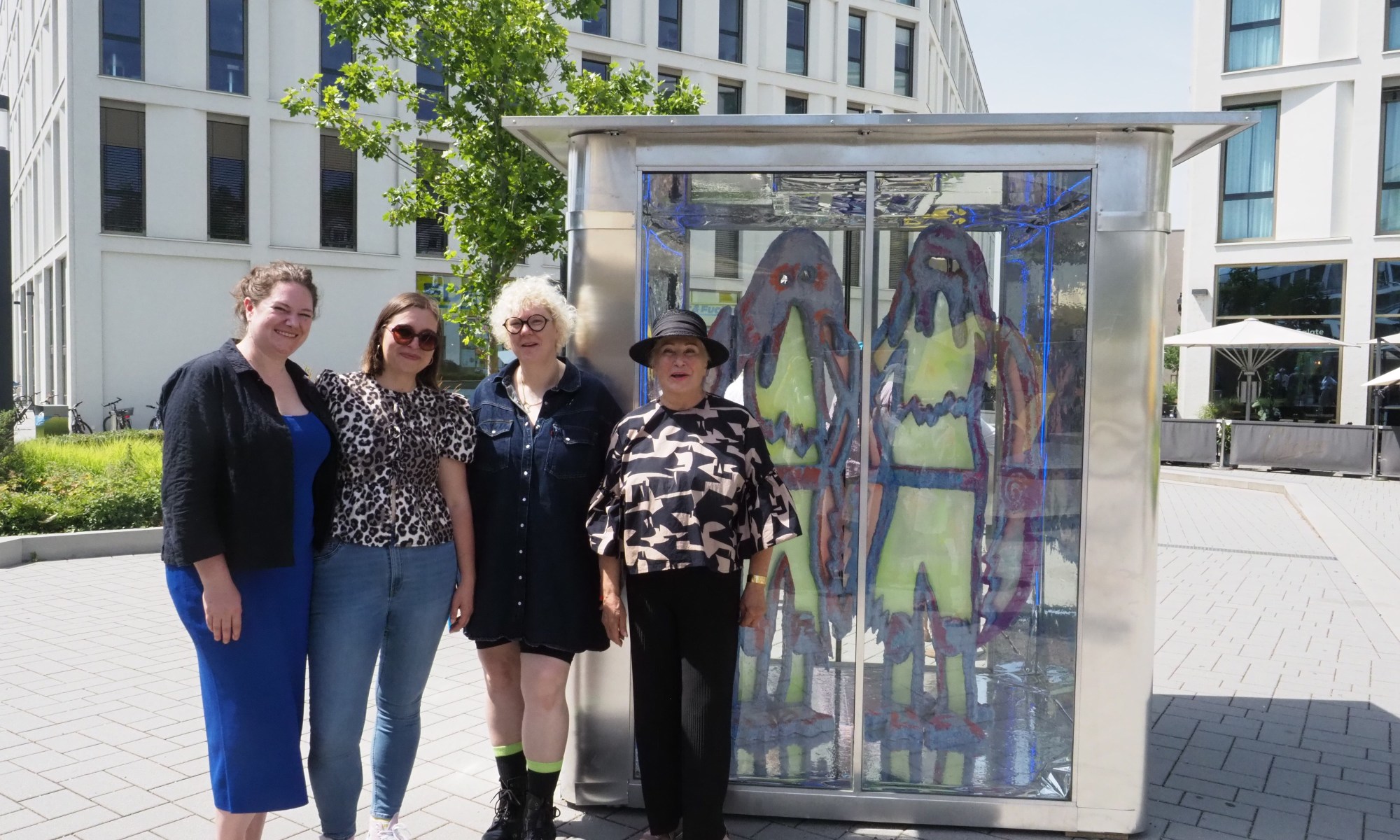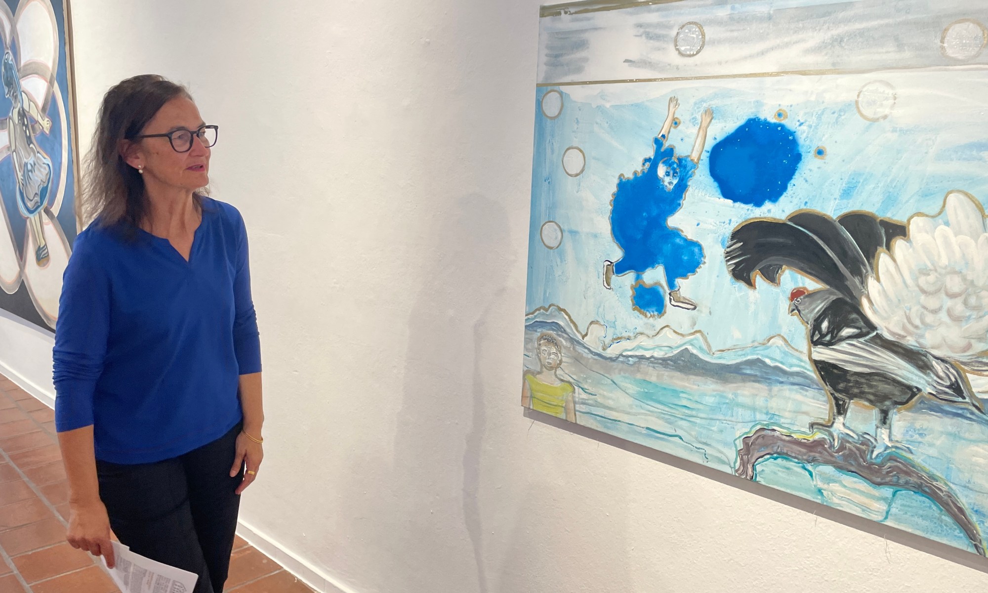 Der Rapper mit Klaus Effern, Galerieleiterin Anjalie Chaubal und Mensch mit Tieren von Lisa Endriß.