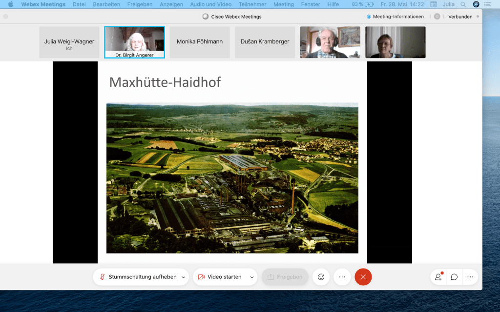Zeugnisse der Eisen-, Glas- und Porzellanindustrie sowie der Maxhütten in Haidhof und Sulzbach-Rosenberg waren Thema beim Online-Osrttermin des Denkmalnetz Bayern beim Bayerischen Landesverein für Heimatpflege e.V. (Screenshot Julia Weigl-Wagner)