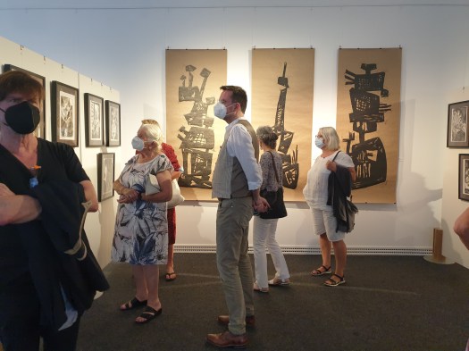 Werke von Margot Luf sind aktuell noch bis zum 29. November 2023 in der Ausstellung „Rhythmisaches Spiel zwischen Skulptur und Farbe“ der Volksbank Mittlerer Neckar eG in Nürtingen zu sehen.