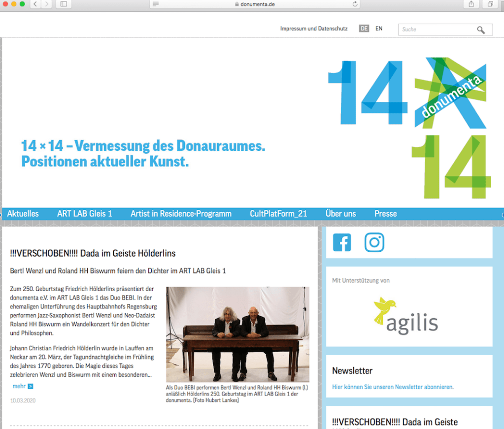 Der donumenta e.V. (gegründet 2002) steht für den Austausch von Kunst und Kultur in den Ländern des europäischen Donauraums. Seit dem Ende der Jugoslawienkriege vernetzt die Initiative um die Regensburger Künstlerin Regina Hellwig-Schmid Künstlerinnen, Künstler, Kulturschaffende, Kuratoren und Wissenschaftler. Gemeinsames Ziel ist die Zusammenarbeit über Ländergrenzen hinweg und die Vision eines modernen Europas.